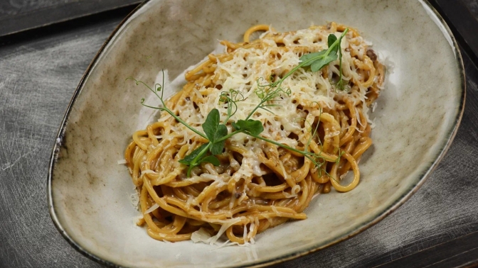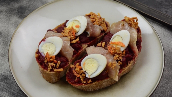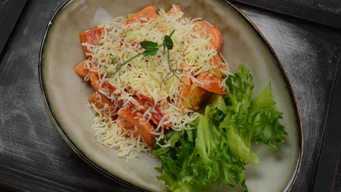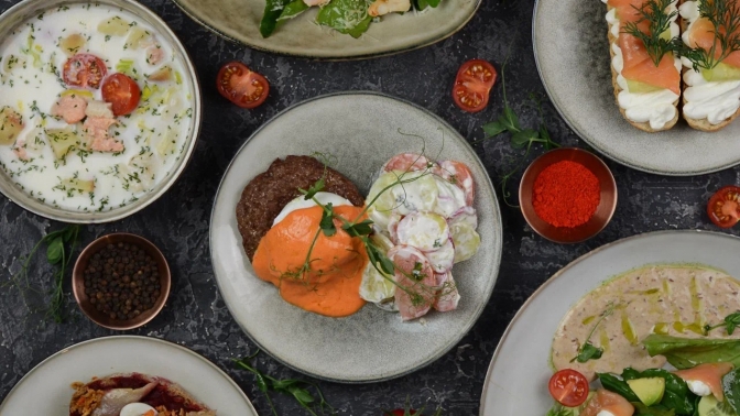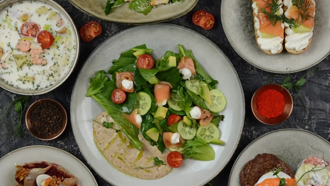 Меню — это свежий взгляд на традиционную русскую кухню. Классика переосмыслена с фантазией: форшмак с яблоками и свеклой, «Оливье» с пастрами, нежные клецки в сырном муссе и не только.