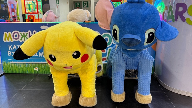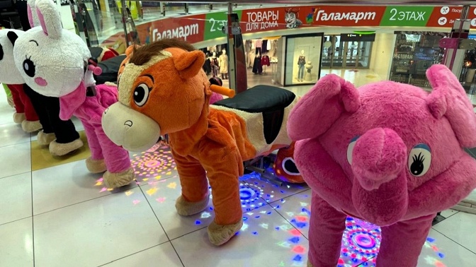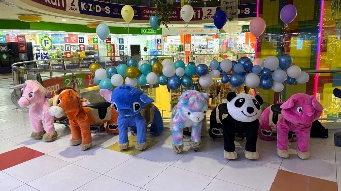 Особенности аттракциона:— пони абсолютно безопасны для посетителей и имущества ТРК, так как двигаются с регулируемой скоростью до 10 км/час и имеют оболочку из мягкого плюшевого материала;